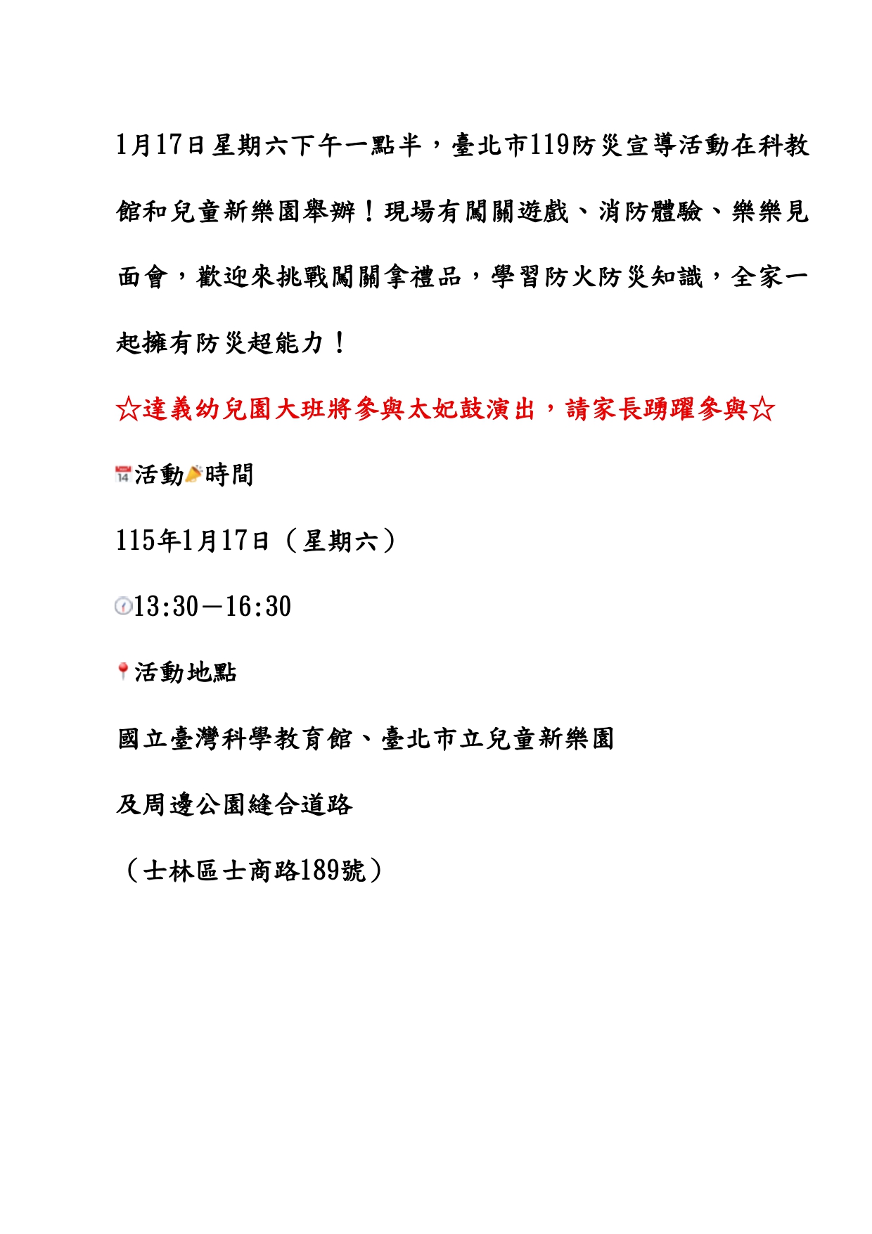臺北市政府115年「 119防災宣導活動」